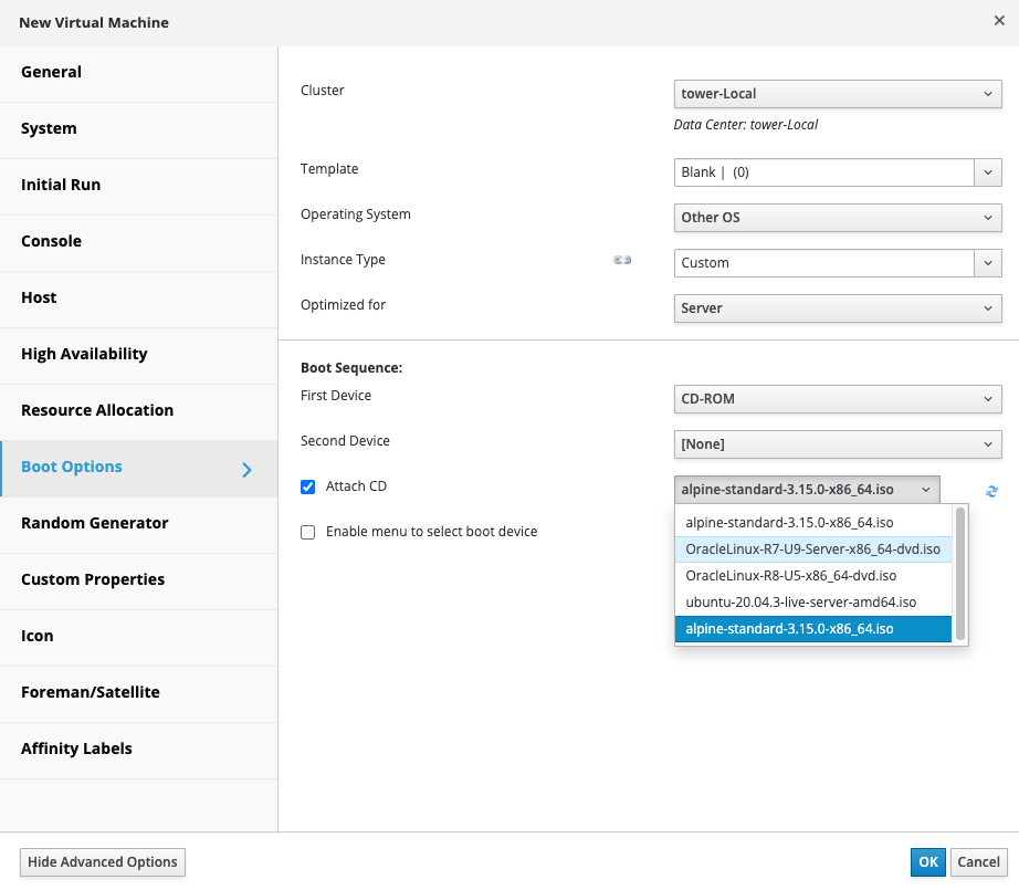 First Deviceto CD-ROM. Check theAttach CDcheckbox and select the ISO image from the drop down