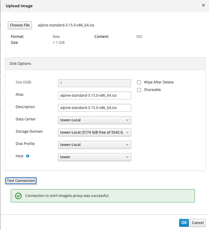 - Hit OK to upload the image if the connection shows a green connection successful message