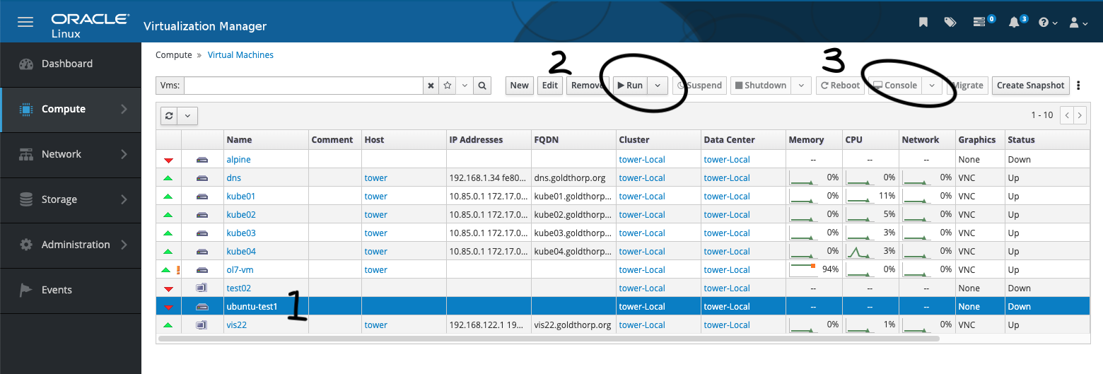 Consolebutton to launch a console window in virt-viewer (it may take 30 seconds for the Console button to become enabled)